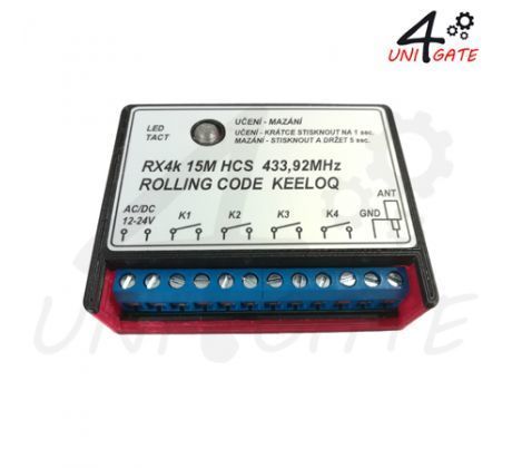 Sestava dálkového ovládání pro jednoduchou integraci k novým i stávajícím zařízením. Komplet dálkového ovládání v systému plovoucího, tzv. bezpečnostního kódu obsahuje 2ks vysílač TXM 4k a 1ks přijímač RX-KPA 4-kanálový. Na přijímač lze naladit 15ks vysílačů v super-plovoucím kódu. Napájení přijímače je 12/24V. Zapojení na svorkovnice.
