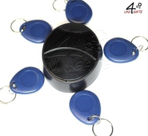 Čipový snímač vč. 5ks čipů (přívešků), extérní, 12/24V, systém pevného kódu 433MHz fix code. Jedenotlivé čipy naladitelné a evidovatelné. Možnost doplnění o další kusy á54,-. Celkový počet čipů je závislých na paměti přijímače.