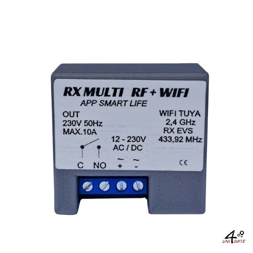 Mini univerzální přijímač WiFi 12-230V AC/DC vč. přijímače GX pro ovládání jakýchkoliv pohonů mobilním telefonem nebo vysílačem D.O. (impulsní kontakt), bezdrátové WIFI. Ovládání APP TUYA nebo našimi ovladači TXM G.