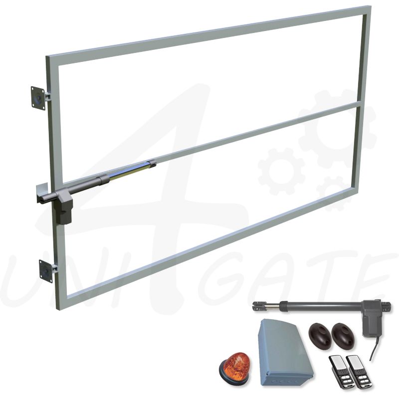 KOMPLET jednokřídlá brána vč. AUTOMATIZACE. Jeklový pozinkovaný profil bez sloupků, pro vlastní dodatečnou výplň. Boční doraz. Sestava automatických pohonů TURN vč.veškerého příslušenství. Výběr z WIFI ovládání.