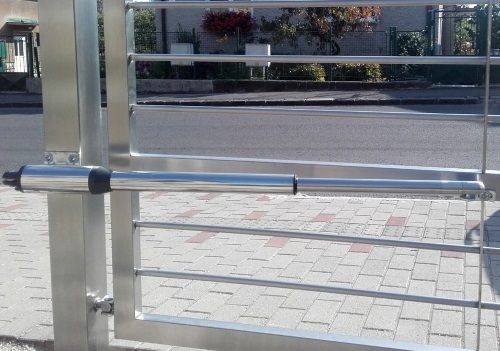 Dvoukřídlá otočná brána, jeklový nerezový (INOX) profil pro vlastní dodatečnou výplň.
