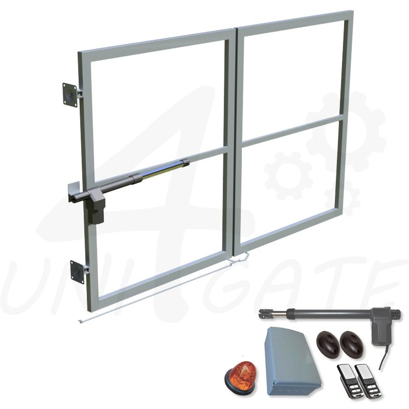 KOMPLET jednokřídlá brána skládací na DÁLKOVÉ OVLÁDÁNÍ. Jeklový pozinkovaný profil, pro vlastní dodatečnou výplň. Kotvení regulovatelnými panty s velkou základnou na zeď, spodní zemní doraz, rameno synchronizace křídel. Sestava automatického pohonu TURN vč.veškerého příslušenství. Výběr z WIFI ovládání.