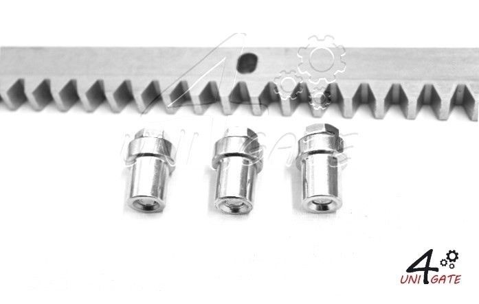 Ocelová ozubená tyč k navaření - klasik, 3ks oválných děr vč. šroubů a distancí. Rozměr 30 x 12 x 1000mm. Povrchová úprava žárový zinek. Standardní ozubená tyč bez zúžení, zkrácení apod. Používána u 90% výrobců. Kvalitní výrobek.