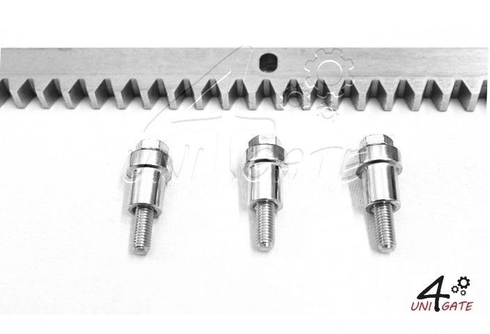 ABC2 Ocelová ozubená tyč k navaření - masivní typ, 3ks oválných děr vč. šroubů s distancí, standard, 30 x 12 x 1000mm.