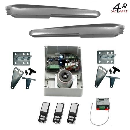 2 ks - pohon WIX 224 pro křídlovou bránu, masivní ALU skořepina, ocelové převody, šedý design, vč. vestavěných nastavitelných dorazů