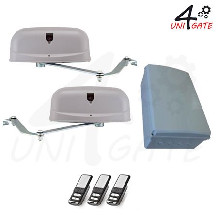 Sestava pohonů křídlových bran ramenových, set 2ks ESO 2, pro dvě křídla do 600kg, průjezdová světlost do 5m, vč. řídící elektroniky P300, vestavěného přijímače a 2ks vysílače TXM G + 1ks TXM G ZDARMA