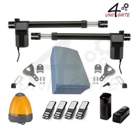 Pohony křídlových bran - set 2ks TURN 100 WIFI s výkonem 350W, pro dvě křídla do 600kg, průjezdová světlost do 5 m vč. elektroniky P300, fotobuněk RS18, WIFI modulu, majáku SP 230 LED, vestavěného přijímače a 2ks vysílače TXM G + 2ks TXM G ZDARMA