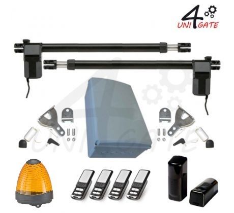 Pohony křídlových bran - set 2ks TURN 300 WIFI s výkonem 350W, pro dvě křídla do 700kg, průjezdová světlost do 9m vč. elektroniky P300, fotobuněk RS18, WIFI modulz, majáku SP 230 LED, vestavěného přijímače a 2ks vysílače TXM G + 2ks TXM G ZDARMA