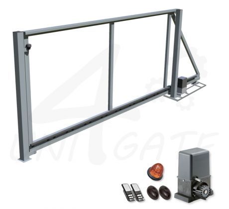 KOMPLET posuvná samonosná brána vč. sloupků, kotvící základny s osazenými prvky a AUTOMATIZACE. Jeklový pozinkovaný profil, pro vlastní dodatečnou výplň. Nosný profil vč.ložiskových vozíků a veškerého příslušenství kování. VODÍCÍ A DOJEZDOVÝ SLOUPEK.