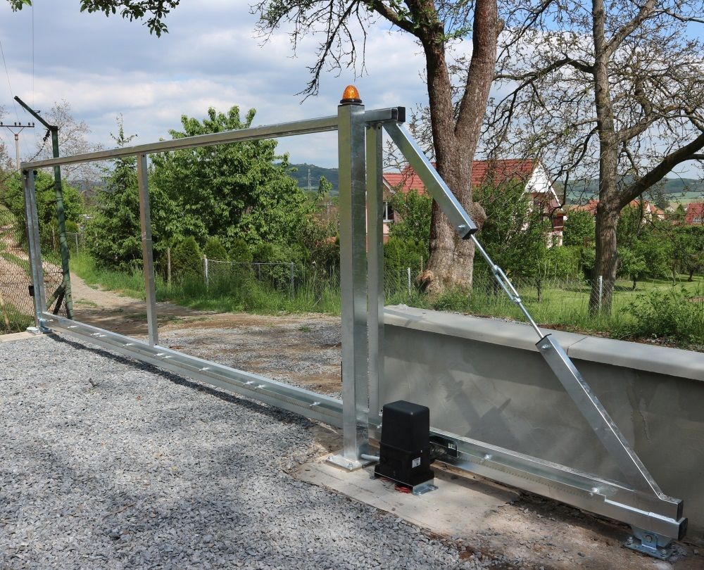 Posuvná samonosná brána vč. sloupků, základny a pohonu
