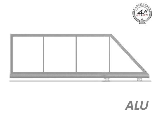 Posuvná samonosná brána nesená pojezdová, jeklový hliníkový (ALU) profil, pro vlastní dodatečnou výplň. Nosný profil (ALU) vč.ložiskových vozíků, horního vedení a dojezdové kapsy spodní i horní vč. držáků. Bez vodícího a dojezdového sloupku.