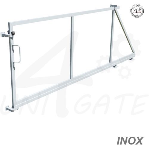 Posuvná samonosná brána bez vodícího a dojezdového sloupku, jeklový nerezový (INOX) profil, pro vlastní dodatečnou výplň s instalací do rámu, popř. na rám, avšak bez možnosti přesahu. Horní vedení (2x rolna), dojezdová kapsa spodní i horní vč. držáků. Nosný profil vč.ložiskových vozíků a veškerého příslušenství.