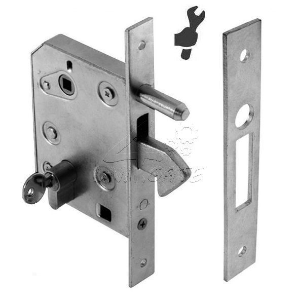 Zámek pro posuvné brány boční hákový, rozteč 72mm, vč. vložky s klíči vč. zabudování