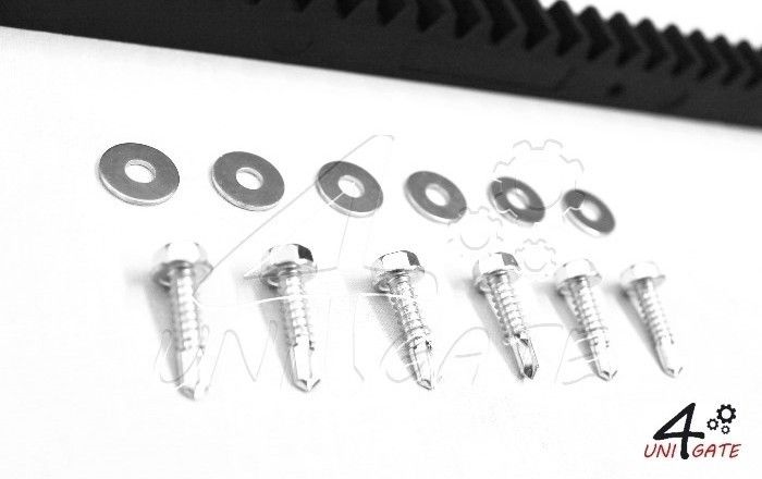 ABC1 Nylonová ozubená tyč k našroubování - masivní typ, 6ks úchytů směrem dolů, vč. šroubů a podložek, standard, 28 x 21 x 1000mm.