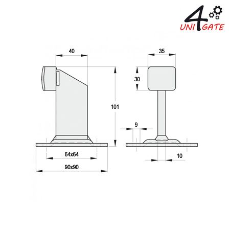 Šroubovací doraz posuvné brány, koncový vč.gumy, rozměr 90x90 výška 101mm