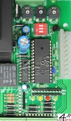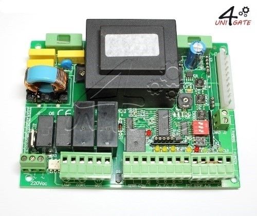 Řídící elektronická jednotka pro posuvné brány vč. rozvaděče - boxu IP55, 230V, procesorová pro 1 motor (posuvné brány). Nastavení pomocí přepínačů a trimru vč.postupného ladění chodu. Možnost připojení dalších prvků vč. osvětlení. Jednoduché zapojení.
