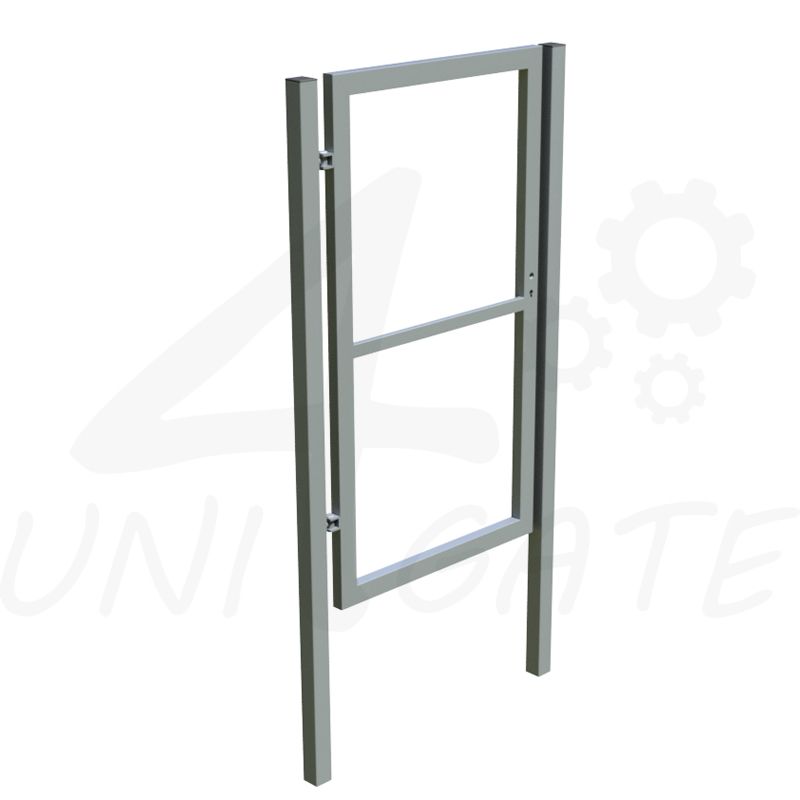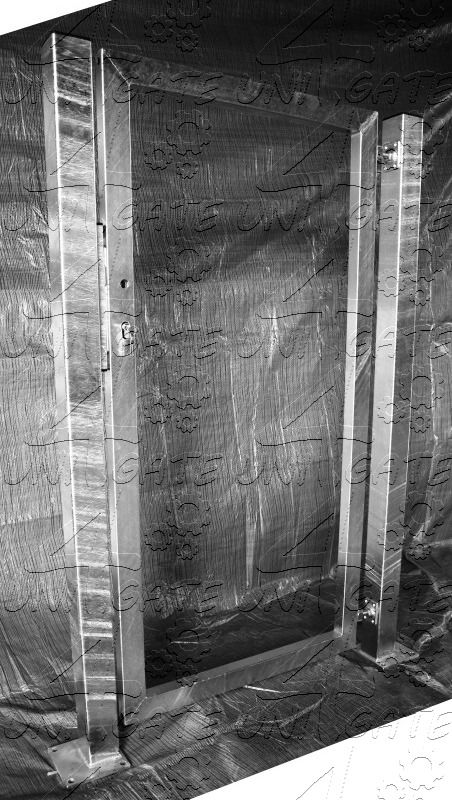 Vstupní branka, jeklový pozinkovaný profil, pro vlastní dodatečnou výplň, varianta vč. nosných sloupů a vč. regulovatelných pantů.