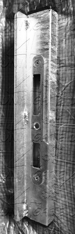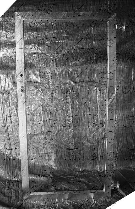 Vstupní branka, jeklový pozinkovaný profil, pro vlastní dodatečnou výplň, varianta bez nosných sloupů vč. regulovatelných pantů s velkou základnou pro kotvení na zeď. Zámek a protikus zámku pro kotvení na zeď vč. vložky s klíči.