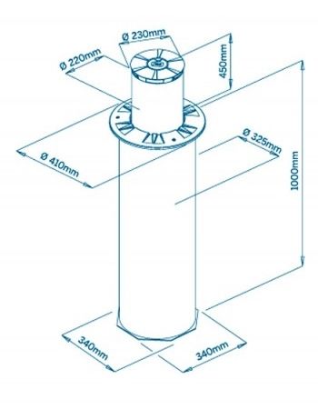 Tento typ je vhodný pro intenzivní použití se 100% vytížením. Průměr sloupu je 230 mm, tloušťka pláště 4mm, výsuv 450 mm. Vyrobeno z kvalitních materiálů, celá vnější konstrukce je ošetřena zinkováním. Provozní teplota -20 ° C až 55 °C.